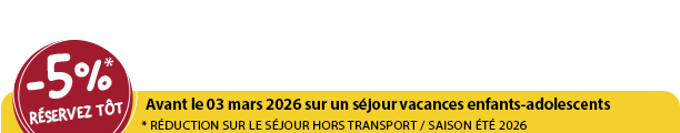 Base de plein air de Mézels : colo avec hébergement en chalet bois sur pilotis, chambres de 4 lits avec sanitaires completst, errains de sports et aires de jeux. Petits déjeuners en self et repas servis au plat, en terrasse face à la rivière ou en intérieur. Un bivouac pour aller grimper plus loin : repas trappeur, nuit sous tente Effectif du groupe : 10 participants Capacité d’accueil de la colonie de vacances : 192 participants |